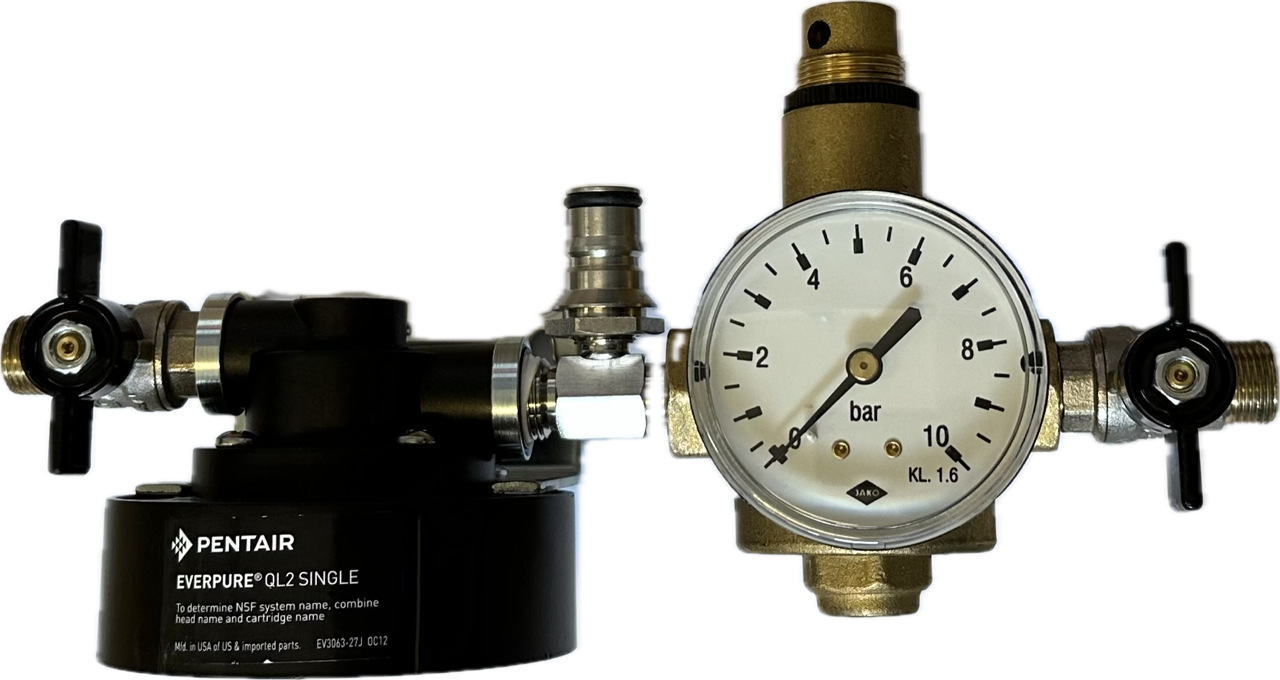 EVERPURE Filteranlage QL3 mit Druckminderer - Entdecken Sie die innovative EVERPURE Filteranlage QL3, die speziell zur Reinigung Ihres Leitungswassers entwickelt wurde. Diese komplett ausgestattete Filteranlage kommt mit einem integrierten Druckminderer und einem präzisen Manometer, um Ihnen stets die optimale Wasserqualität zu garantieren. Die EVERPURE QL3 Filteranlage ist ideal für Haushalte und gewerbliche Anwendungen, die Wert auf reines und frisches Wasser legen. Sie funktioniert ohne Filterpatrone, was die Wartung und Handhabung erheblich vereinfacht. Genießen Sie sauberes Wasser, das frei von Verunreinigungen ist, und erleben Sie den Unterschied in Geschmack und Qualität. Vertrauen Sie auf die bewährte Technologie der EVERPURE Filteranlage QL3 und sorgen Sie für ein gesundes und reines Wasser in Ihrem Zuhause oder Betrieb!